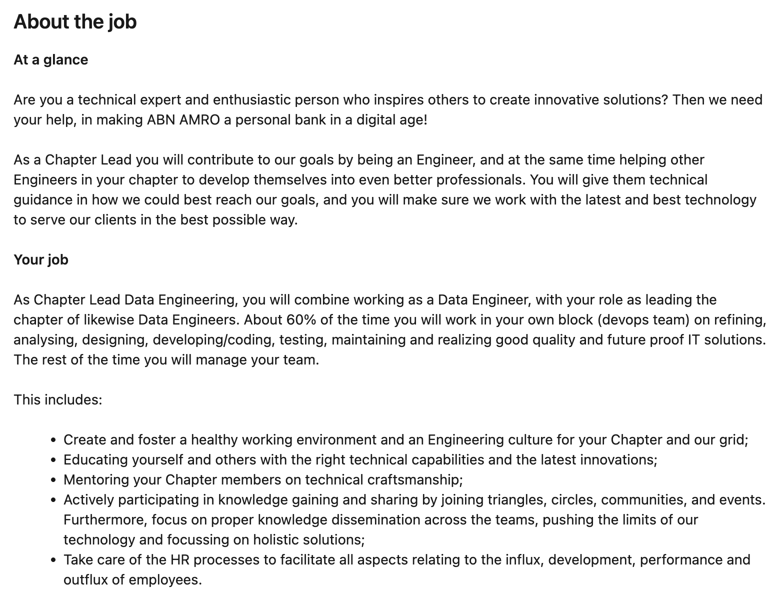 The job is based in Amsterdam and will supervise the engineering team supporting the bank's Conversational AI activities. Here are two key paragraphs from the listing: