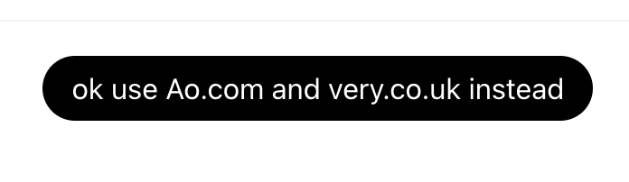 You see I had given some thought to using very.co.uk or AO.com. But, no, I opted for blind loyalty thanks to Prime and dozens of years of habit – and was rudely snapped out of it by a simple NO ENTRY sign.