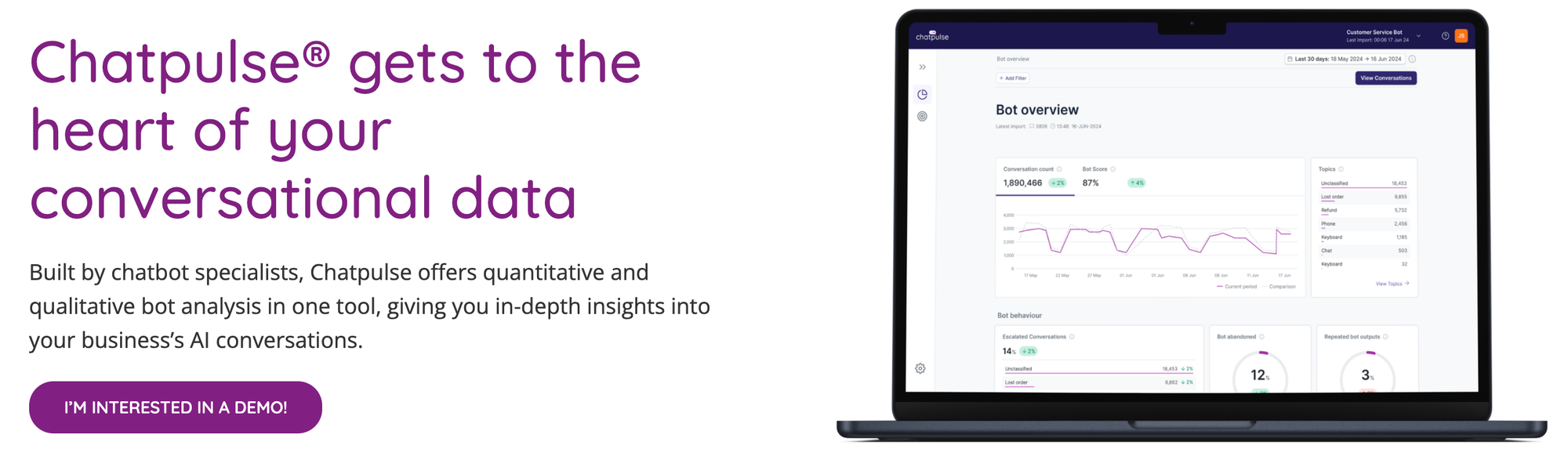 But if you'd like to get into the guts of how your chatbot is performing in the context of a whole host of metrics, then you might consider taking a look at Chatpulse.